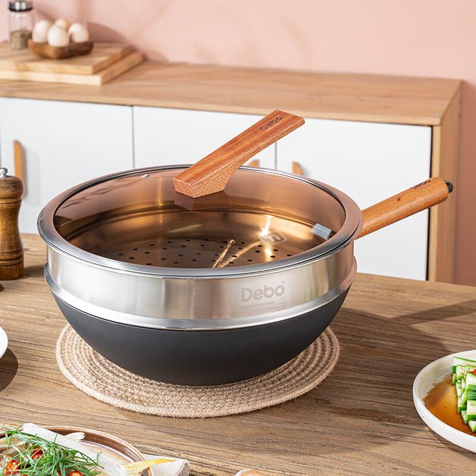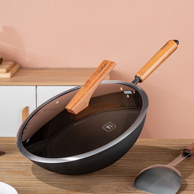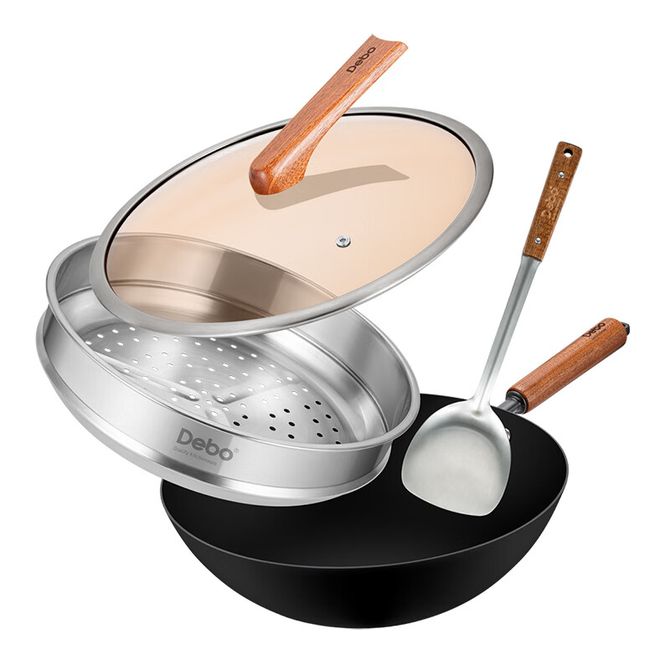 Debo 德铂DEP-DS502铁锅钛铸铁不粘无涂层炒锅受热均匀炉灶通用-30CM