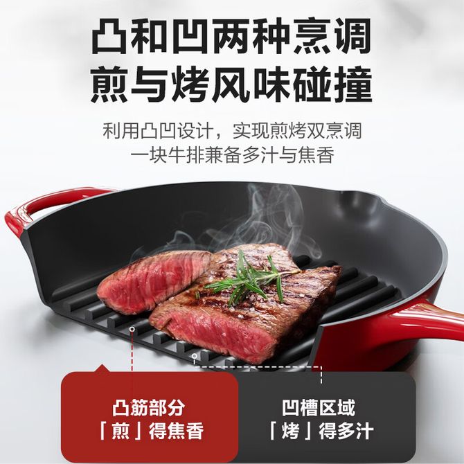 苏泊尔(SUPOR) 珐琅煎锅烧烤盘烤肉锅电磁炉燃气灶通用 【可放烤箱】珐琅煎烤锅25cm