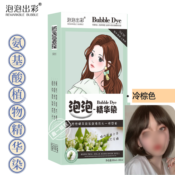 泡泡出彩 泡沫染发剂植物精华染/冷棕色/盒/盖少量白发