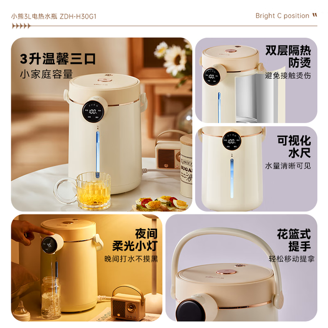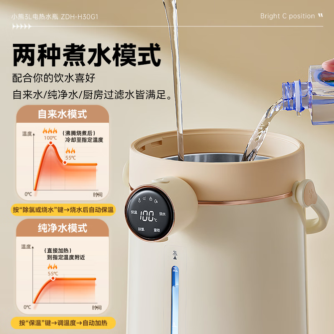 小熊/Bear 电热水瓶 智能电热水壶保温一体全自动恒温一键沸腾除氯双煮水模式新款家用烧水壶