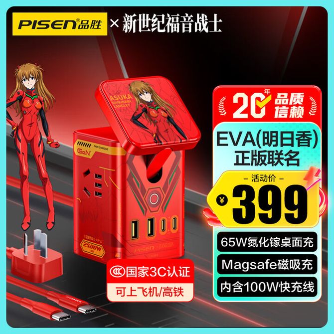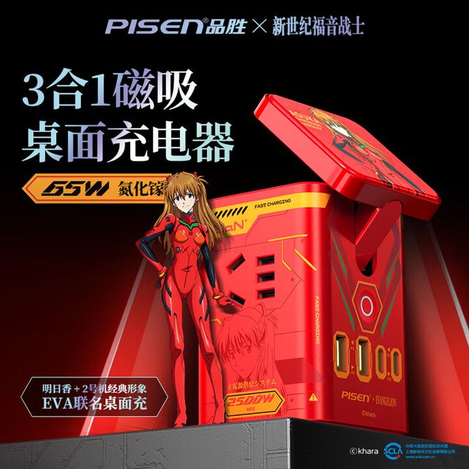 品胜(PISEN) 3C认证EVA明日香65W氮化镓桌面充电器站40W快充套装多口8合1插座