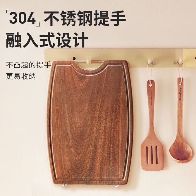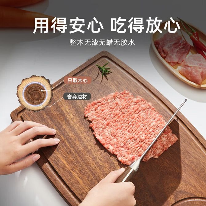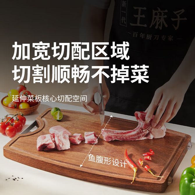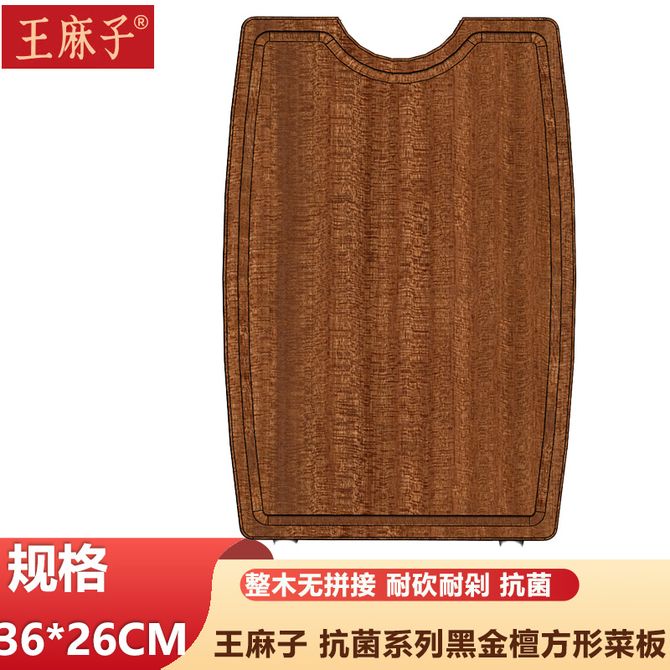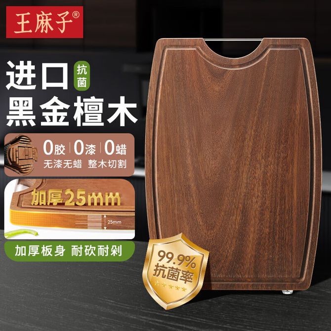 王麻子 砧板黑金檀木整木菜板抗菌防霉食品级砧板加厚切菜板家用方形菜板方形菜板 小号款