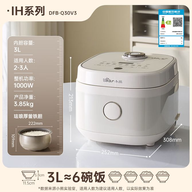 小熊/Bear 电饭煲DFB-Q30V3 健康耐磨0特氟龙厚铁釜 IH立体环绕加热电饭锅 2-3人 多功能微压预约不沾铁胆3L 健康耐磨0特氟龙厚铁釜 IH立体环绕加热电饭锅 2-3人 多功能微压预约不沾铁胆3L 兑换价格 20000 里程 会员卡别 终身白金卡 白金卡 金卡 银卡 普通卡 儿童卡 服务 由 纳华优选 发货并提供售后 颜色: 白色 购买数量: 件 库存件 配送地址: 立即购买 加入购物车 成功添加到购物车 关闭 购物车共有 种商品 总金额为: 组合销售 产品介绍 产品规格 售后服务 产品咨询 发现好货 苏泊尔(SUPOR) 电饭煲电饭锅4L大容量 不粘内胆4-6个人前置大屏面板24小时预约上蒸下煮多功能家用智能SF40FC0063 8300 里程 奥克斯/AUX 电饭煲3L电饭锅 2-3人小型预约智能电饭煲VK-309F2 5100 里程 苏泊尔(SUPOR) 迷你电饭煲家用电饭锅2-3人3L小容量蓝钻不粘内胆快煮饭功能智能预约小型多功能SF30FC0187 6100 里程 美菱/MELNG 电饭煲3L触控式预约定时MF-LC3005 4400 里程 苏泊尔(SUPOR) 煮饭煮粥智能预约多功能一锅多用小型微压电饭锅30FC0187 7200 里程