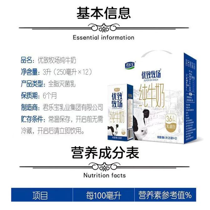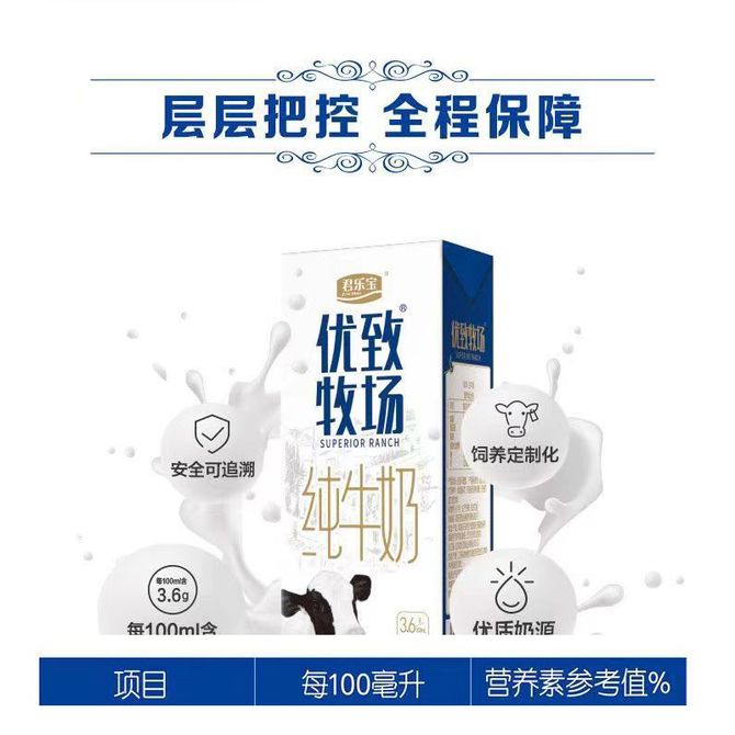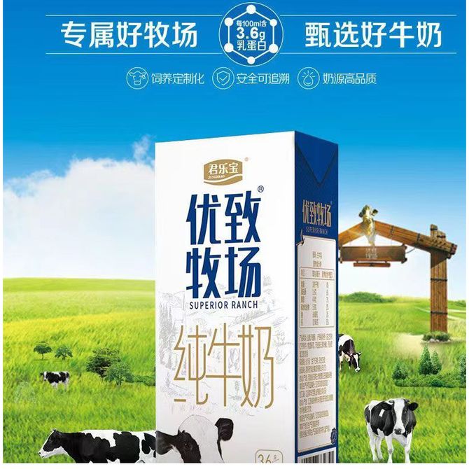 君乐宝(JUNLEBAO) 优致牧场纯牛奶(原味)利乐砖1-12-250ml
