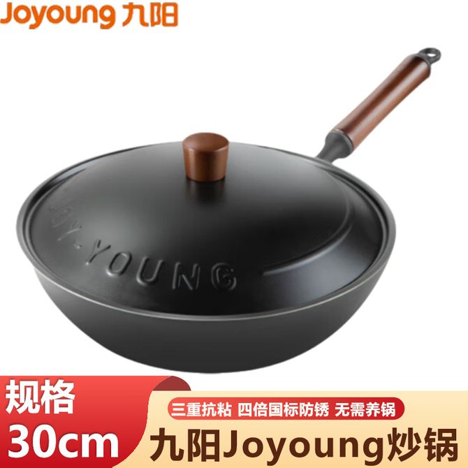 九阳/Joyoung 炒锅30cm不粘锅铁锅铸铁无涂层家用轻颜钛铁不沾锅国标防锈炒锅炒菜锅