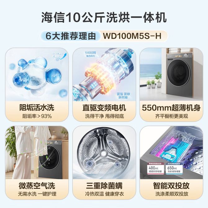 海信/Hisense 滚筒10公斤洗烘一体机 直驱电机 智能双投放 WD100M5S-H 高洗净比 阻垢活水洗 智能双投放 兑换价格 187000 里程 会员卡别 终身白金卡 白金卡 金卡 银卡 普通卡 儿童卡 服务 由 存悦商贸 发货并提供售后 洗衣机容量: 10kg 洗衣机产品类型: 洗烘一体 颜色: 灰色 购买数量: 件 库存件 配送地址: 立即购买 加入购物车 成功添加到购物车 关闭 购物车共有 种商品 总金额为: 组合销售 产品介绍 产品规格 售后服务 产品咨询 发现好货 小熊/Bear 迷你洗衣机 XYJ-C05V5 8200 里程 小熊/Bear 内衣裤洗衣机 双重除菌3档可选 XYJ-C05V5 8000 里程 美的/Midea 0.5kg迷你洗衣机 内衣裤洗衣机小型 迷你洗衣机 高温除菌螨 轻音洗 MNB5VCAW0E 27400 里程 OIDIRE 迷你洗衣机 双桶便携清洗机 半自动小型清洗杯婴儿衣物迷你清洗机 出差旅行宿舍用迷你洗衣机 ODI-XYJ16 10000 里程 大宇 折叠迷你洗衣机便携旅游内衣袜子小型半自动清洗机 DYXY-ZD13 13000 里程
