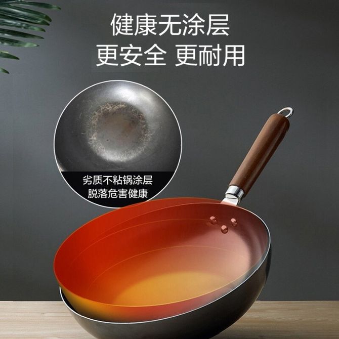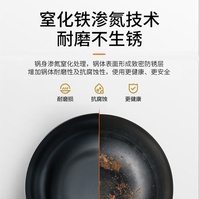 该款为32cm炒锅无盖款;高纯精铸 旋压技术 健康无涂层 轻韧锅身 窒化渗氮技术