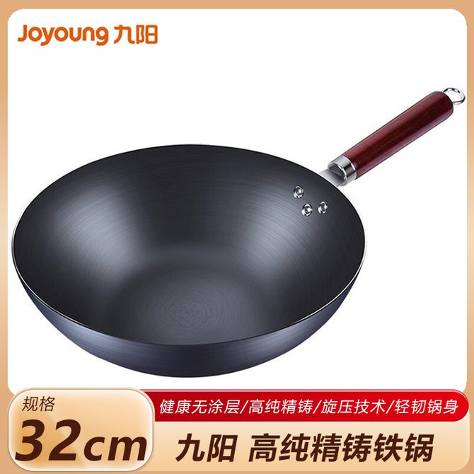 九阳/Joyoung 精铸铁锅32cm 家用炒菜锅老式无涂层大铁锅炒锅