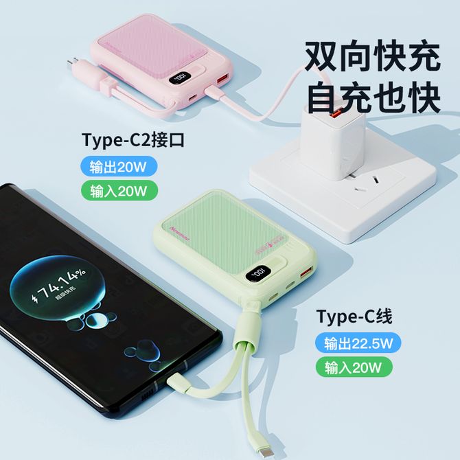纽曼 20000毫安充电宝 AL550 自带线3C认证可上飞机