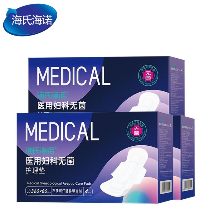 海氏海诺 医用护理垫夜用360*80mm4片*3盒 医用卫生巾100%全棉表层护垫姨妈巾经期垫巾