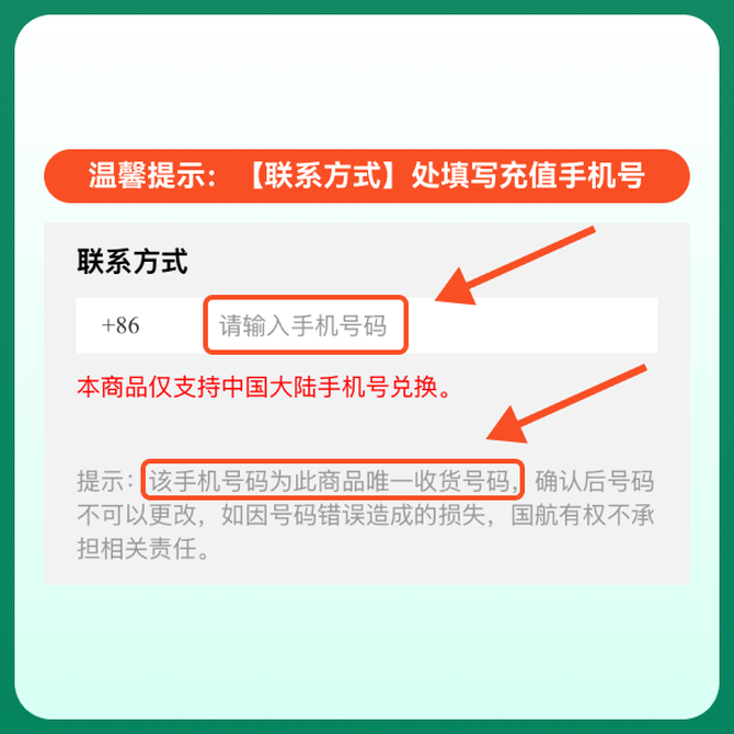 联系方式填写充值手机号码,请在15天内领取和充值,如有疑问可联系店铺客服