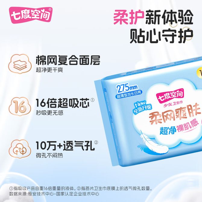 七度空间 网面卫生巾275mm*50片 10万+透气孔 透气更轻盈 棉网复合面层 16倍超吸芯 10万+透气孔 兑换价格 3500 里程 会员卡别 终身白金卡 白金卡 金卡 银卡 普通卡 儿童卡 服务 由 锦宁商贸 发货并提供售后 包装数量: 5包独立装 购买数量: 件 库存件 配送地址: 立即购买 加入购物车 成功添加到购物车 关闭 购物车共有 种商品 总金额为: 组合销售 产品介绍 产品规格 售后服务 产品咨询 发现好货 维达卷纸 卫生纸实惠装厕纸家用厕所纸巾手纸整箱批有芯大卷家庭装 1200-2300 里程 维达 Vinda 卷纸 140g/卷*10卷 蓝色经典3层卫生纸 1300 里程 心相印抽纸 茶语丝享系列 量贩家庭装 3层*100抽*4包(茶香 压花) 1100 里程 心相印 经典系列 二层面巾纸 180抽*6包*1提 1100 里程 维达Vinda 超韧系列抽纸(3层*130抽*6包) 原生木浆卫生餐巾纸婴儿面巾纸 6包优惠装 1100 里程