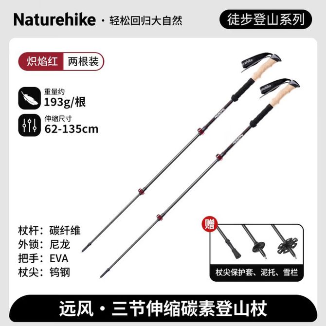挪客(NatureHike) 远风三节伸缩碳素登山杖户外徒步爬山男女碳纤维手杖超轻拐杖 炽焰红/62-135cm(两根装) 远风三节伸缩碳素登山杖NH20DS003 炽焰红/62-135cm(两根装) 兑换价格 14100 里程 会员卡别 终身白金卡 白金卡 金卡 银卡 普通卡 儿童卡 服务 由 亿宇安百户外专营店 发货并提供售后 颜色: 其他 购买数量: 件 库存件 配送地址: 立即购买 加入购物车 成功添加到购物车 关闭 购物车共有 种商品 总金额为: