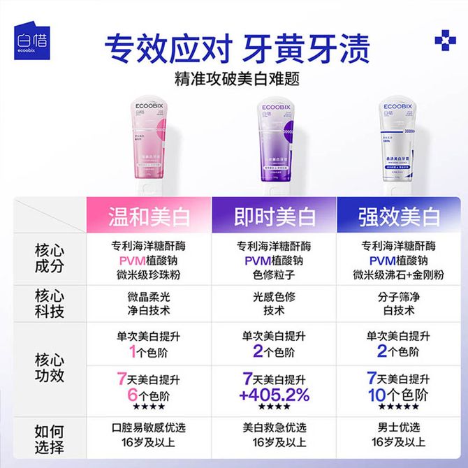 白惜/ecoobix 色修美白牙膏100g 抗糖男女士含氟即时提亮白清洁新口腔气去牙黄渍 兑换价格 1700 里程 会员卡别 终身白金卡 白金卡 金卡 银卡 普通卡 儿童卡 服务 由 北京华夏祥龙 发货并提供售后 化妆品容量: 100g/ml 购买数量: 件 库存件 配送地址: 立即购买 加入购物车 成功添加到购物车 关闭 购物车共有 种商品 总金额为: 组合销售 产品介绍 产品规格 售后服务 产品咨询 发现好货 云南白药牙膏单支清新口气呵护牙龈健康牙周冬青 活性肽165g 1500 里程 云南白药 健齿护龈改善牙龈问题清新口气留兰香型180g 1500 里程 云南白药 牙膏薄荷香型100g减轻牙龈问题清新口气祛除口腔异味 1100 里程 云南白药牙膏留兰香型180g 去黄牙垢口气清新减轻牙龈问题 1500 里程 狮王(Lion) WHITE&WHITE大白小苏打益生菌清新牙膏120g 2支美白去黄清新口气(沁凉青柠) 1100 里程