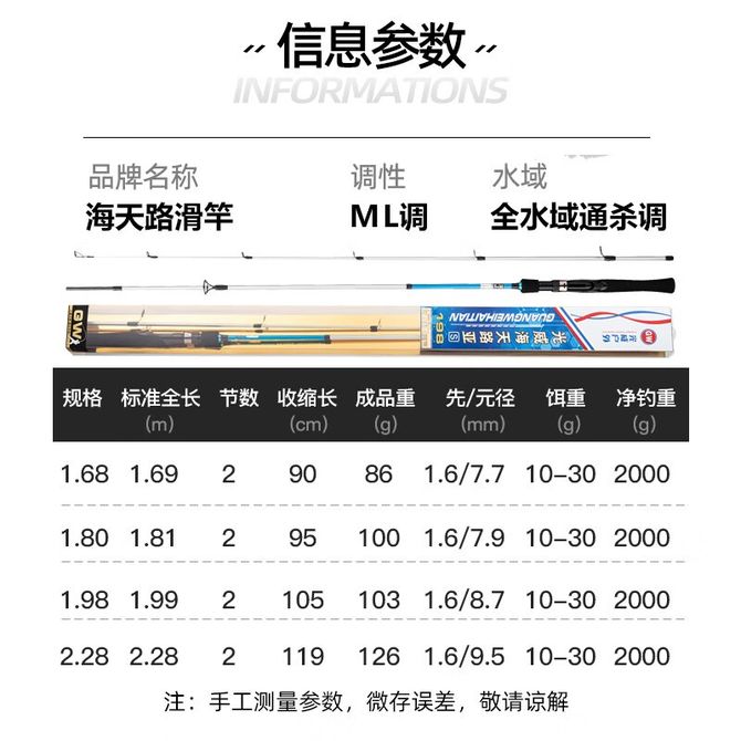 直柄海天路亚裸竿(1.8米以下指的是1.68米,2.1米实际是2.28米)