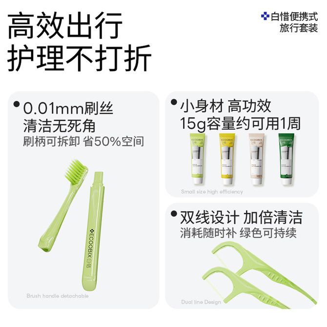 白惜/ecoobix 便携式旅行套装柠汁凤梨(牙膏15g*1支+牙刷*1支+牙线*2个) 便携式套盒男女士出差旅游清新洁口腔臭 兑换价格 1300 里程 会员卡别 终身白金卡 白金卡 金卡 银卡 普通卡 儿童卡 服务 由 北京华夏祥龙 发货并提供售后 化妆品容量: 组合 购买数量: 件 库存件 配送地址: 立即购买 加入购物车 成功添加到购物车 关闭 购物车共有 种商品 总金额为: