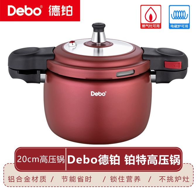 德铂(Debo) 铂特高压锅 家用厨房厨具高效焖煮高压锅燃气灶电磁炉通用 红色-20cm 铝合金材质 一擦即净 4.5L大容量 节能省时 不挑炉灶 兑换价格 20000 里程 会员卡别 终身白金卡 白金卡 金卡 银卡 普通卡 儿童卡 商品已下架 1. 请联系卖家咨询 2. 逛逛卓鹏商贸生活馆选择其他商品 组合销售 产品介绍 产品规格 售后服务 产品咨询 发现好货 爱仕达/ASD 高压锅燃气明火防爆六保险5.3L铝合金22CM家用压力锅YL22S2WG 5500 里程 炊大皇(COOKER KING) 压力锅高压锅7重安全防爆8L适合4-8人燃气电磁炉通用 24cm 12200 里程 双喜 华康装铝压力锅 22CM/5.5L高压力密封圈防爆锅具明火专用高压锅LM06C22 5200 里程 双喜小康装铝压力锅20CMLM-06C 5000 里程 爱仕达/ASD 高压锅304不锈钢六保险5.5L压力锅燃气电磁炉通用WG1822DN 9100 里程