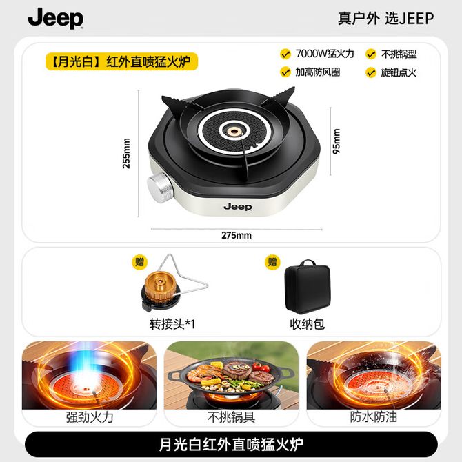 Jeep 红外直喷猛火炉户外便携式卡式炉 月光白(不含气罐)