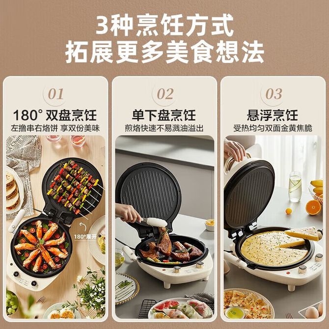 组合销售 产品介绍 产品规格 售后服务 产品咨询 发现好货 苏泊尔(SUPOR)电饼铛家用 双面加热煎饼铛煎烤机三明治机烙饼锅早餐机25mm加深烤盘火力可调JD31A847A 6500 里程 苏泊尔(SUPOR) 电饼铛 自动煎烤机 电火锅多功能 加大加深60mm双加热烙饼 锅面煎饼电饼档 两档火力 JT30A818 5700 里程 苏泊尔(SUPOR)电饼铛家用双面加热电饼档煎烤机烙饼机双面悬浮加热早餐机三明治机JJ30A648-Q 5700 里程 美的(Midea)电饼铛家用智能双面加热煎烤机烙饼机蛋饼机薄饼机煎饼烙饼锅JHN30F 4800 里程 奥克斯 电饼铛家庭用新款双面加热加大尺寸加深烤盘烙饼专用锅自动控温断电煎饼锅早餐机 5200 里程