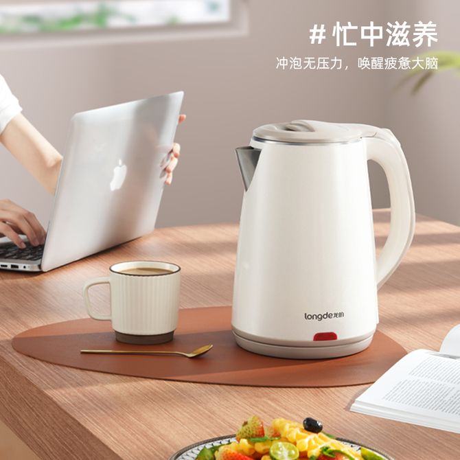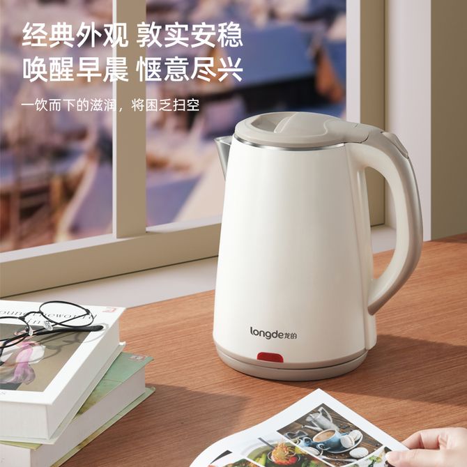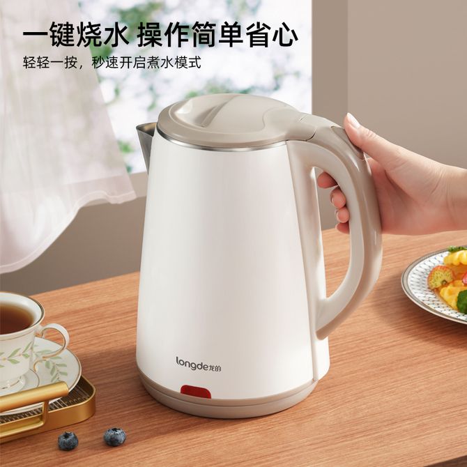 龙的(longde) 电热水壶大容量电水壶食品级不锈钢自动断电烧水壶开水壶双层防烫水壶开水煲快速煮水壶