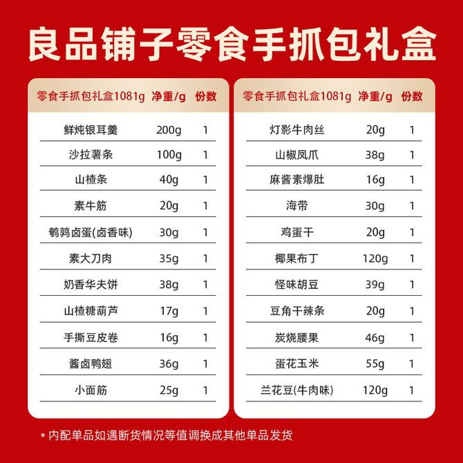 良品铺子 零食手抓包礼盒198型1081g 超豪华22种零食礼包小包装卤货薯条辣条小吃休闲零食新年节日春节年货