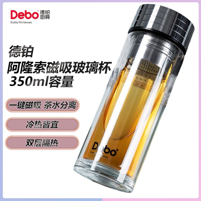 德铂(Debo) 阿隆索磁吸玻璃杯350ml 茶水分离质感拉满浓淡自控磁吸泡茶玻璃杯