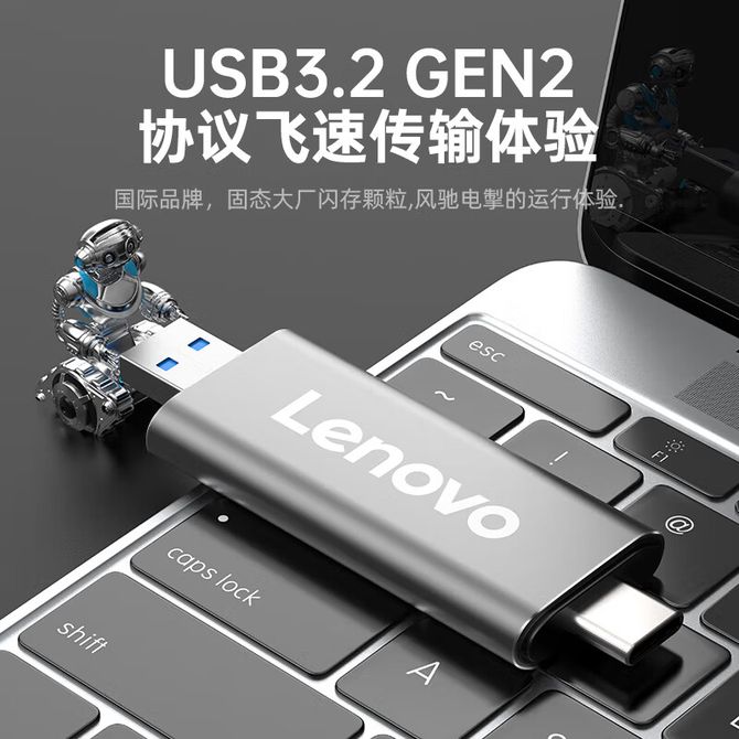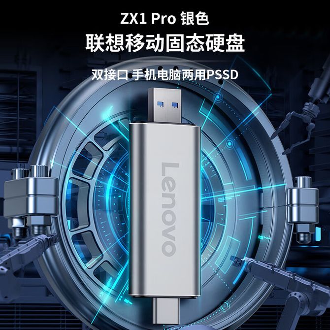 联想(Lenovo) ZX1Pro 128GB 银色 固态硬盘 Type-c USB 双接口 电脑手机直连