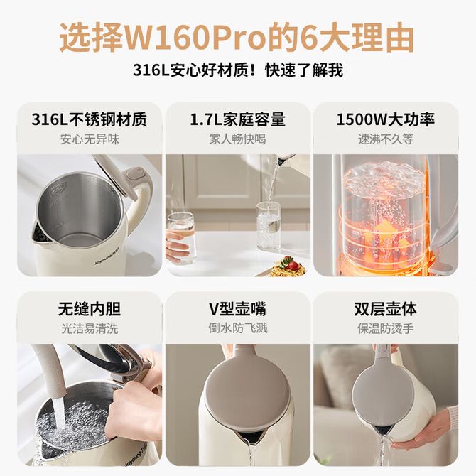 316L不锈钢|1.7L家庭容量|1500W速沸