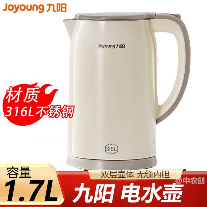 九阳/Joyoung 热水壶烧水壶电热水壶1.7L大容量双层隔热316L不锈钢家用开水壶开水煲