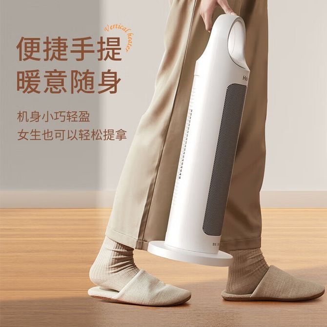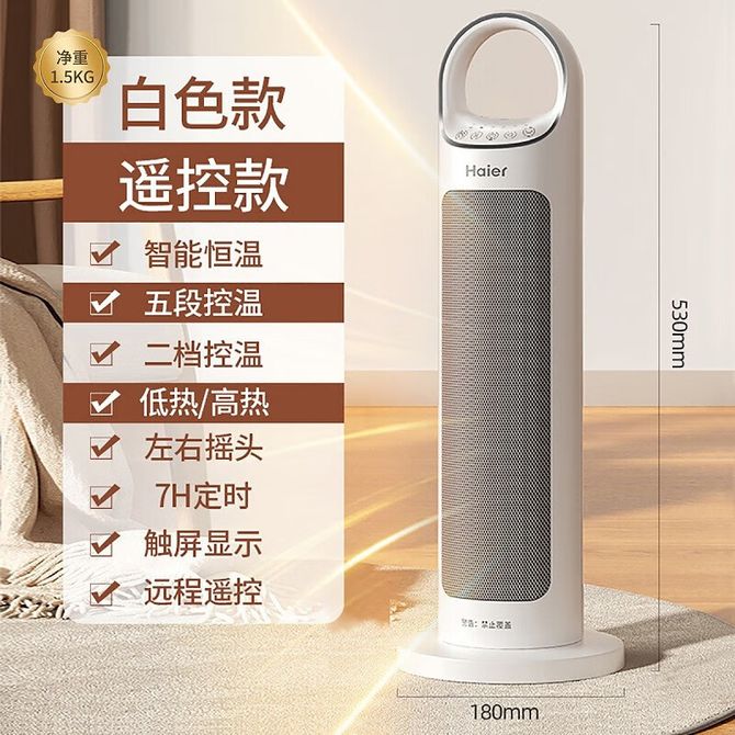 海尔/Haier 取暖器 陶瓷速热智能恒温倾倒断电暖风机立式电暖气 遥控款