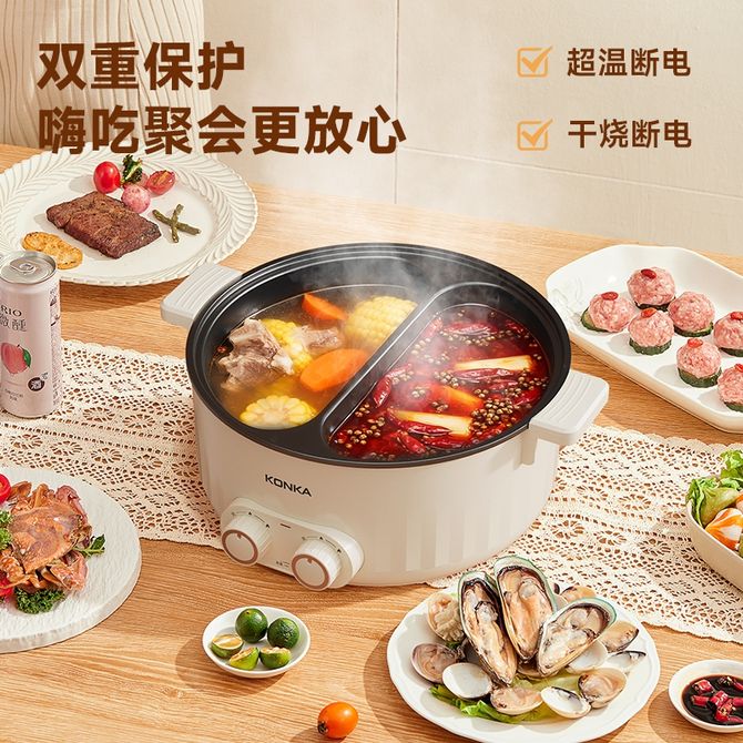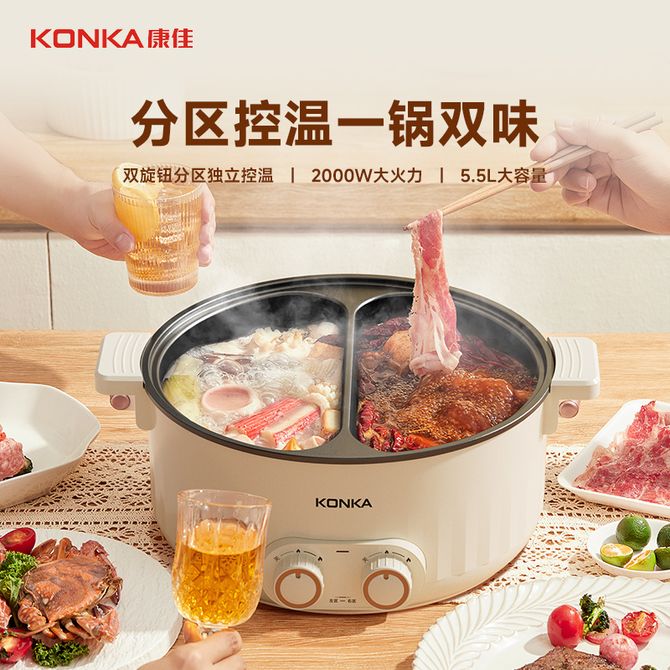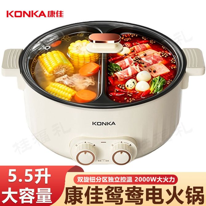 康佳/Konka 鸳鸯电火锅 双旋钮分区独立控温一锅双味大火力鸳鸯锅电火锅 5.5L大容量 不粘锅身 2档火力 左右独立控温 2000W大功率 兑换价格 5200 里程 会员卡别 终身白金卡 白金卡 金卡 银卡 普通卡 儿童卡 服务 由 广西桂福礼供应链管理有限公司 发货并提供售后 颜色: 其他 购买数量: 件 库存件 配送地址: 立即购买 加入购物车 成功添加到购物车 关闭 购物车共有 种商品 总金额为: