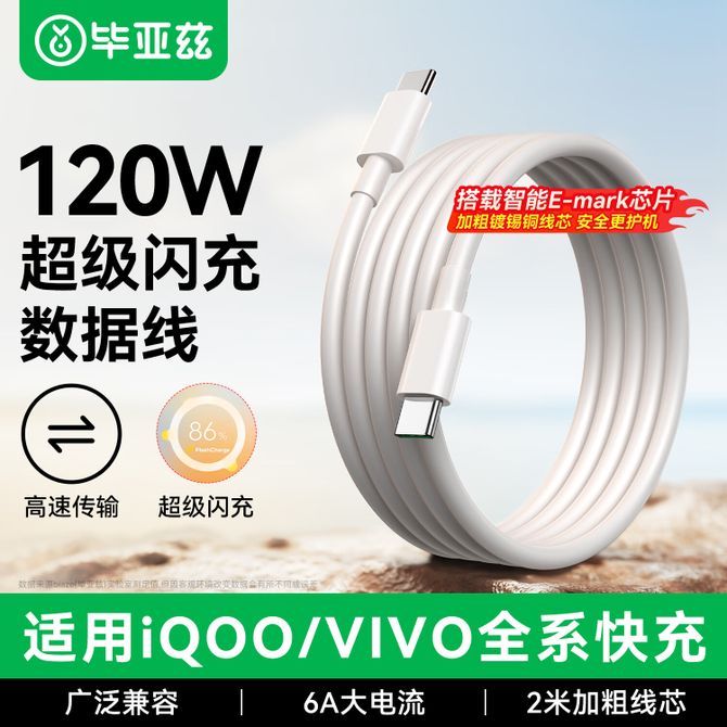 毕亚兹/Biaze 120W双头Type-c快充线 数据线K190 2米