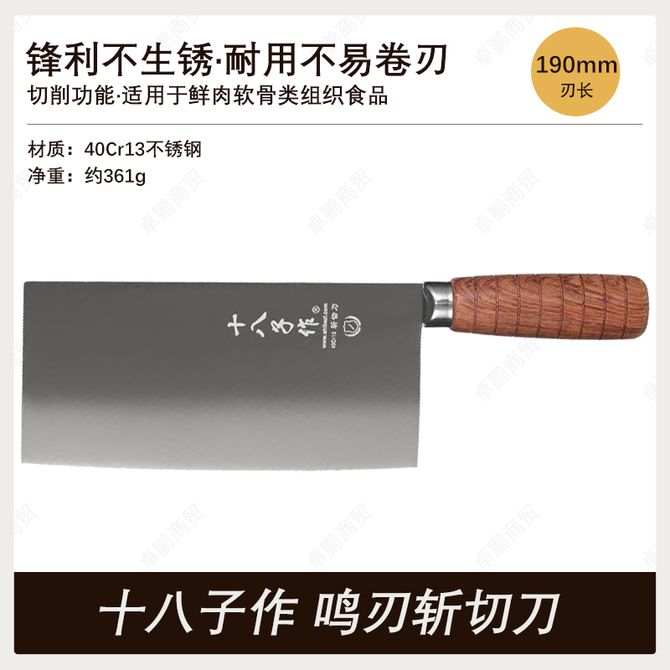 十八子作 鸣刃斩切刀 厨师款中式菜刀厨用家用不锈钢刀具花梨木手柄