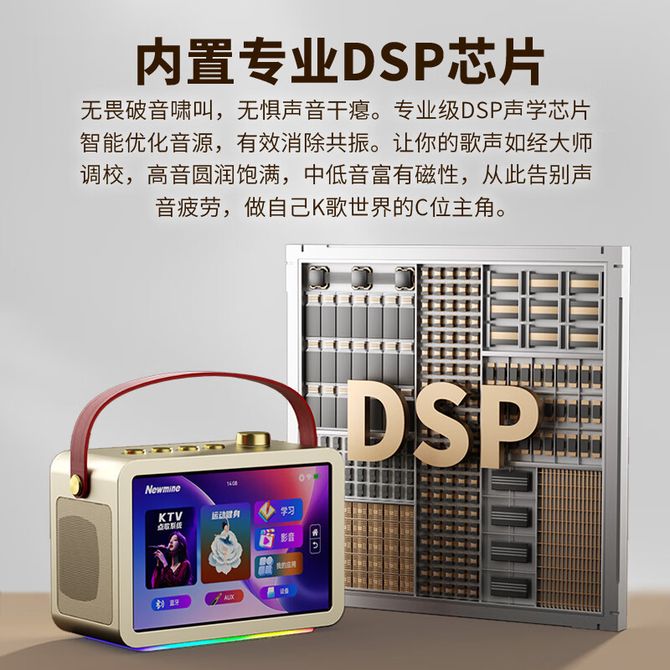 纽曼(Newmine) 话筒音响一体麦克风 KK109 曜石黑 /月光金 智能K歌音箱带屏幕10寸 智能点歌机