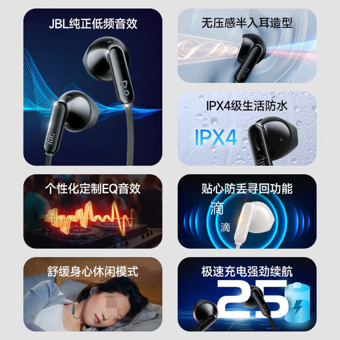 JBL TUNE 235BT 半入耳式耳机 颈挂式蓝牙耳机 防水设计 运动跑步长续航