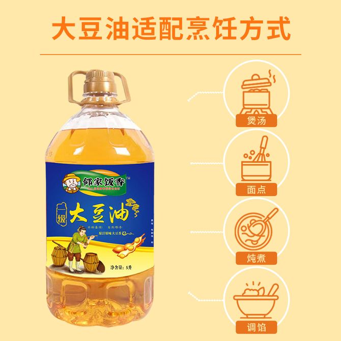 邻家饭香 非转基因浸出一级大豆油 5L/桶 非转基因当季大豆浸出零反式脂肪酸食用油