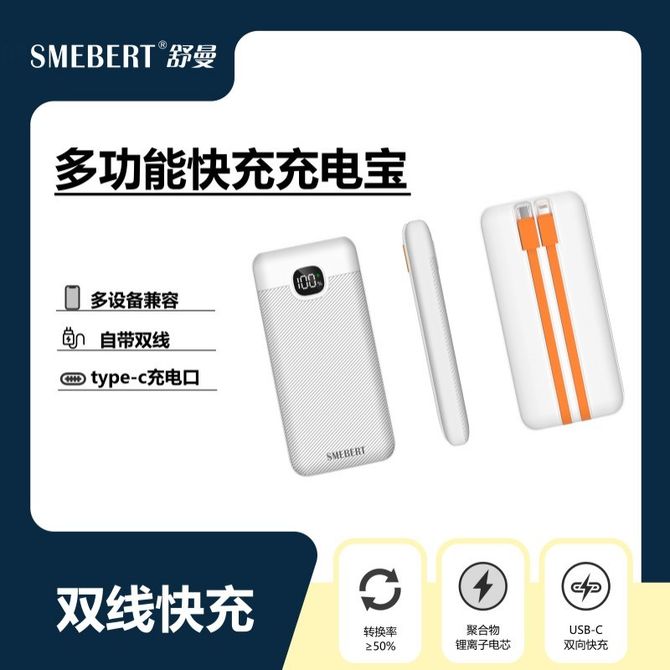 Smebert 【国家3C认证】10000毫安移动电源自带线22.5W超级快充充电宝