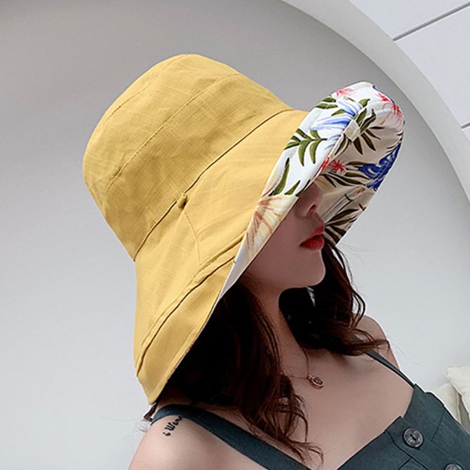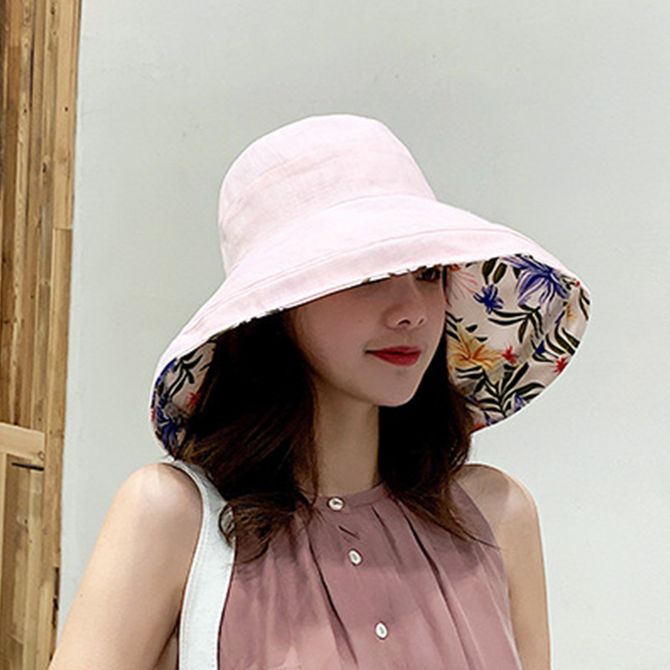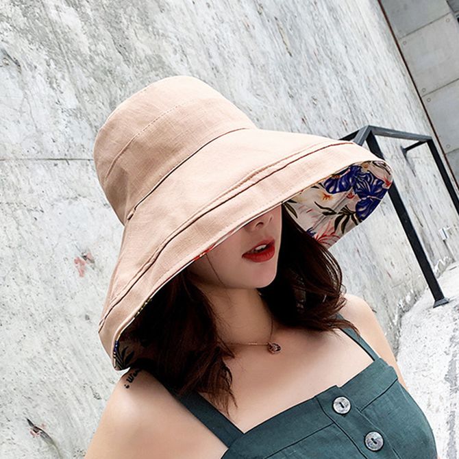 康乐屋 双面戴日系大檐 纯色大花渔夫帽 女太阳帽 透气夏季户外遮阳帽