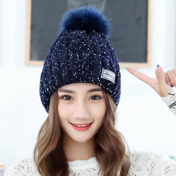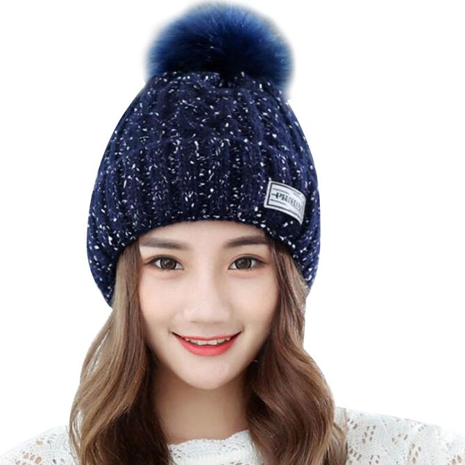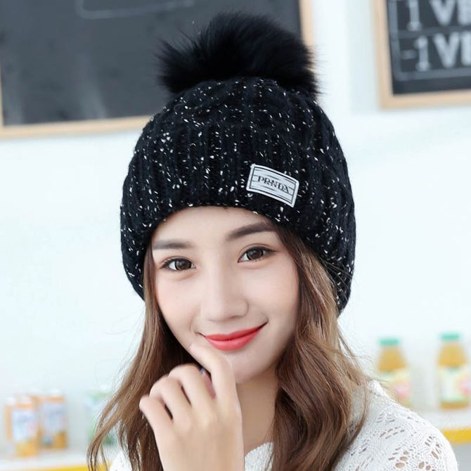 康乐屋 韩版保暖毛球帽 瘦脸月子帽 纯色套头针织帽 秋冬季新款女毛线针织帽