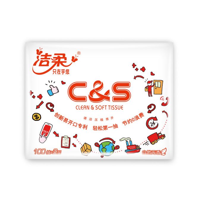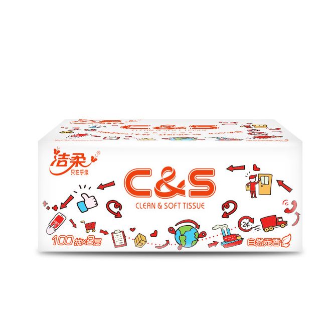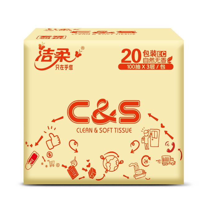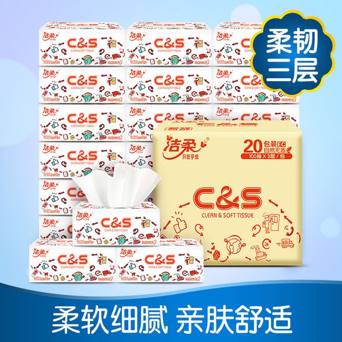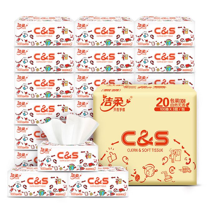 洁柔(C&S)抽纸 3层100抽20包 小规格(短幅) 抽取式卫生纸巾 面纸餐巾纸(整箱售卖)