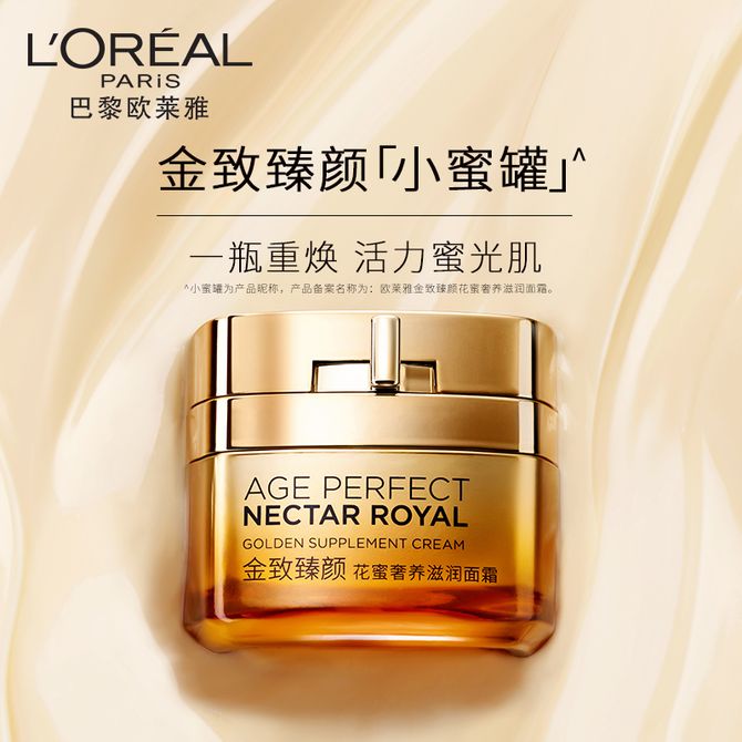 欧莱雅(LOREAL)小蜜罐面霜 女士护肤品 金致臻颜花蜜奢养滋润日霜50ml 紧致滋润 爆红全网