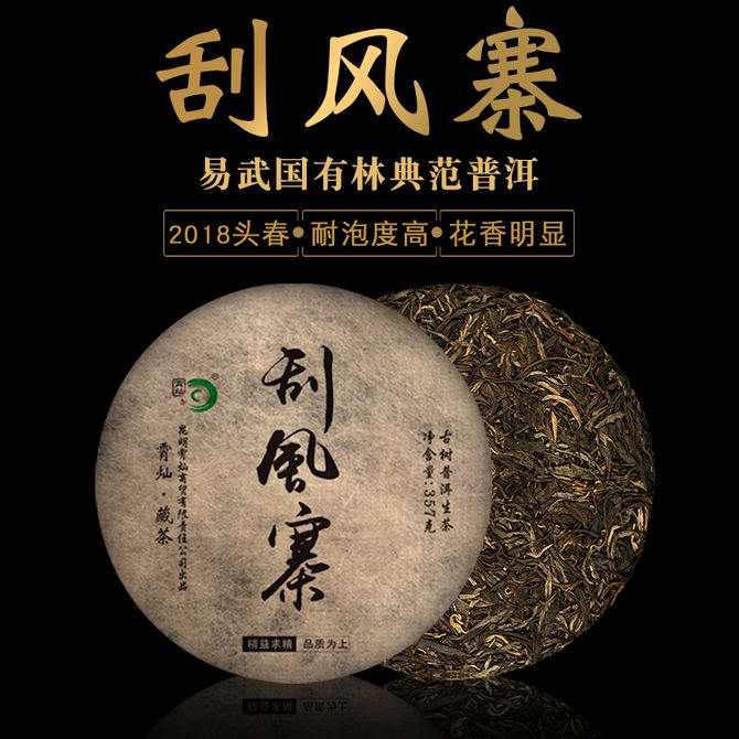 霄灿茶叶 普洱茶生茶刮风寨易武普洱茶生茶饼357g/片 买了开心一辈子的茶