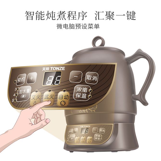 天际(Tonze) 全自动分体煎药壶家用砂锅电煎中医壶陶瓷 4L 大容量4升陶瓷壶体,配中药碗,文火/武火/自动三大功能,9.5小时预约定时,自动保温,分体式 兑换价格 10900 里程 会员卡别 终身白金卡 白金卡 金卡 银卡 普通卡 儿童卡 商品已下架 1. 请联系卖家咨询 2. 逛逛启领生活选择其他商品 组合销售 产品介绍 产品规格 售后服务 产品咨询 发现好货 九阳/Joyoung 养生壶1.5L茶具电茶壶煮茶壶花茶壶玻璃煮茶器煎药壶中药锅药膳电水壶烧水壶 3900 里程 美的/Midea 养生壶 1.5L家用多功能小型全自动办公室烧水壶加厚玻璃煮茶热水壶 MK-YS15P201 4200 里程 美的/Midea 养生壶 1.5L家用养生壶全自动玻璃烧水壶24h预约烧水壶12小时防干烧保护智能恒温 MK-YS15P202 3500 里程 九阳/Joyoung 养生壶迷你玻璃花茶壶煮茶器 12大功能11档温度 电水壶热水壶烧水壶 1.5L DGD1506BQ 3900 里程 美的/Midea 养生壶 1.5L全自动电热水壶 24h预约12小时智能恒温 14大功能11档控温 花茶壶煮茶器MK-Y12Q 3500 里程