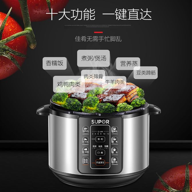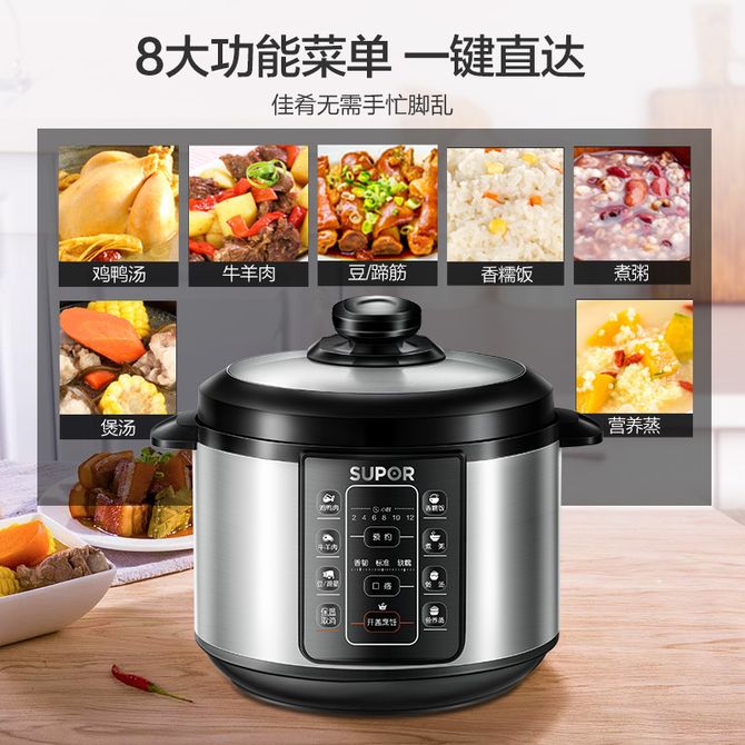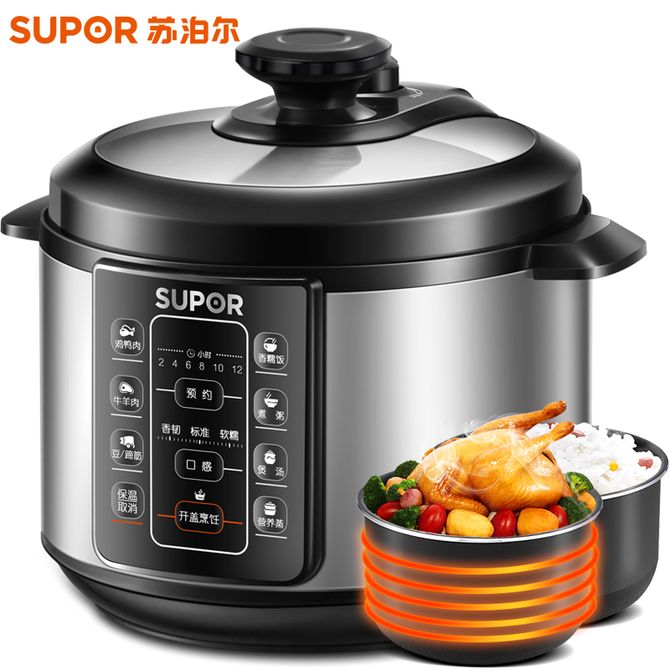 苏泊尔(SUPOR)电压力锅50YC906B-100 家用5L大容量3-6人双胆彩琅内胆底盘加热保温预约功能电压力锅