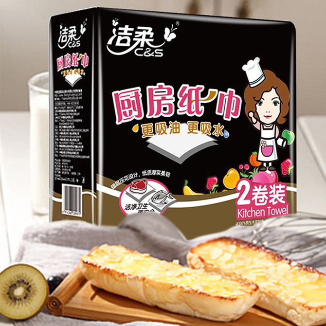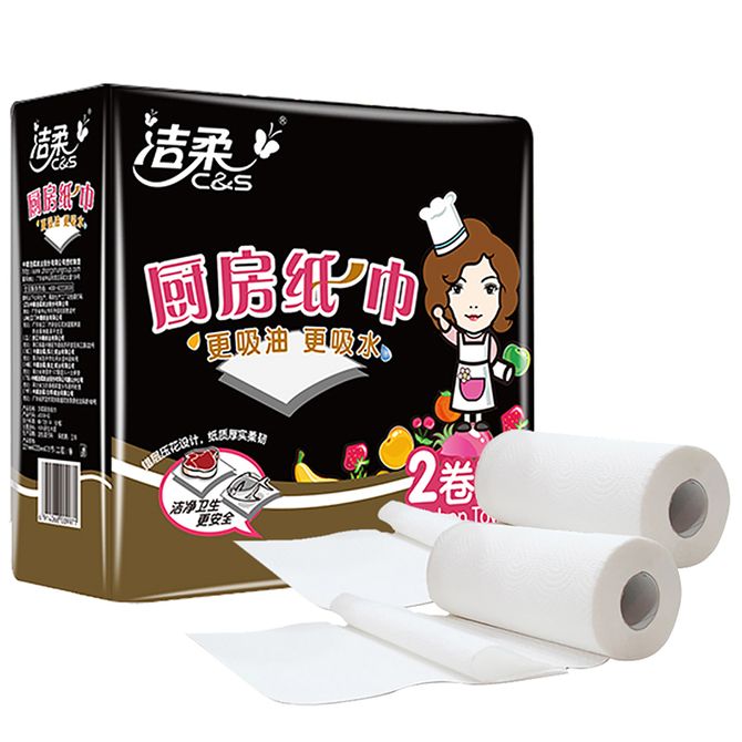 洁柔厨房用纸天然无香吸油吸水料理纸巾卫生纸餐巾纸厨房用纸 75节*2卷