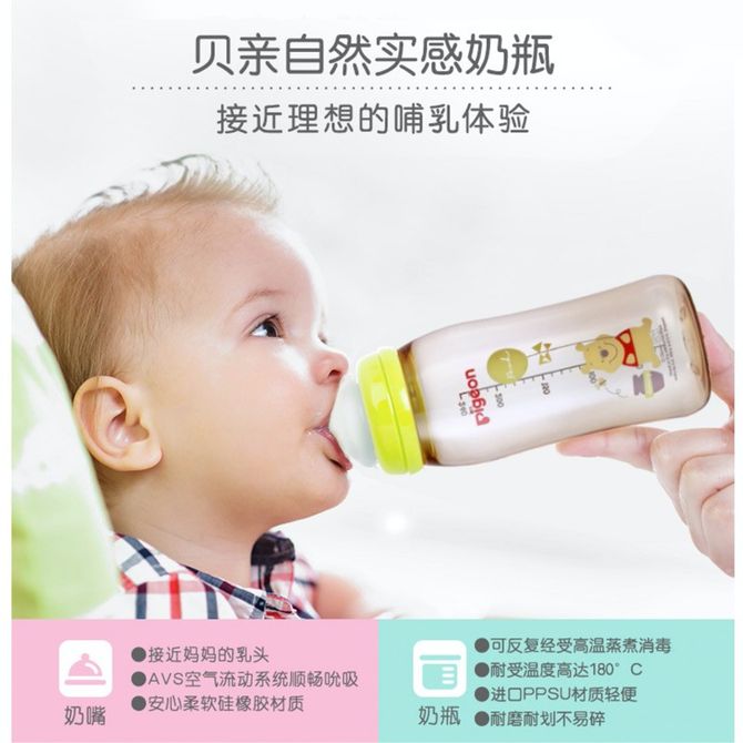 贝亲Disney“自然实感”宽口径PPSU彩绘奶瓶240ml配M奶嘴(维尼-气球)AA161