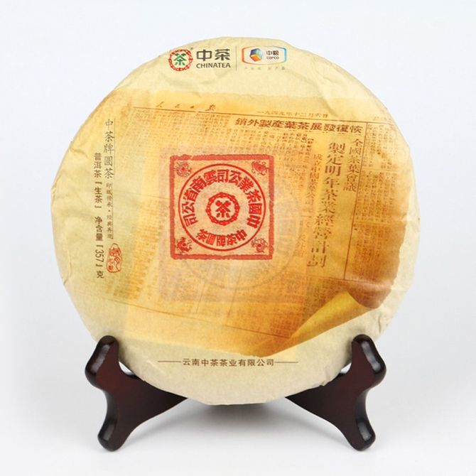 中茶牌圆茶普洱茶2019年经典印级大红印云南普洱茶生茶饼357g中粮茶叶