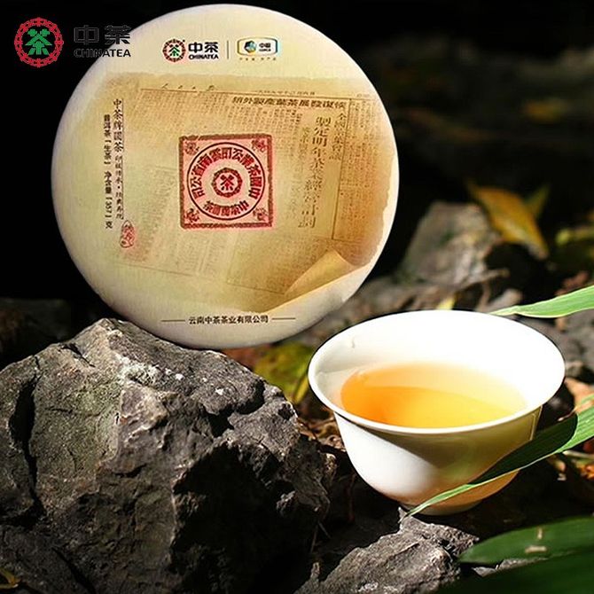 中茶普洱茶2019年经典印级大红印普洱生茶饼357g中粮茶叶