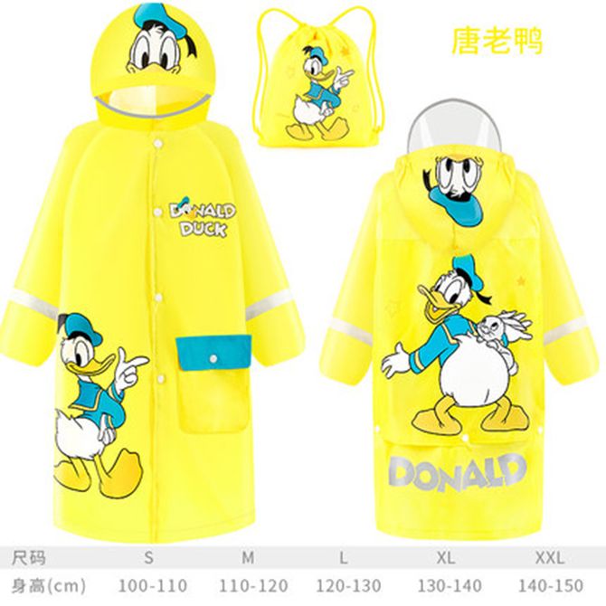 迪士尼(Disney)儿童雨衣男童带书包位加厚宝宝幼儿园小学生防水雨披 唐老鸭儿童雨衣 DF20307-O1 chm