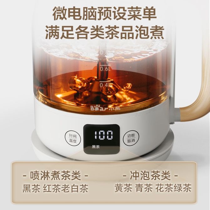 小熊(Bear)煮茶器 蒸汽喷淋式黑茶煮茶壶玻璃小型蒸茶器办公室迷你养生壶煮花茶普洱冲泡茶杯电茶炉微电脑喷淋煮茶 0.8升私享容量;四大预设菜单,40~90°C可调,精准控温;喷淋式煮茶,自由调节茶味浓淡! 兑换价格 10900 里程 会员卡别 终身白金卡 白金卡 金卡 银卡 普通卡 儿童卡 商品已下架 1. 请联系卖家咨询 2. 逛逛北京致诚博雅贸易有限公司选择其他商品 组合销售 产品介绍 产品规格 售后服务 产品咨询 发现好货 九阳/Joyoung 养生壶1.5L茶具电茶壶煮茶壶花茶壶玻璃煮茶器煎药壶中药锅药膳电水壶烧水壶 3900 里程 九阳/Joyoung 养生壶迷你玻璃花茶壶煮茶器 12大功能11档温度 电水壶热水壶烧水壶 1.5L DGD1506BQ 3900 里程 美的/Midea 养生壶 1.5L家用多功能小型全自动办公室烧水壶加厚玻璃煮茶热水壶 MK-YS15P201 4200 里程 美的/Midea 养生壶 1.5L家用养生壶全自动玻璃烧水壶24h预约烧水壶12小时防干烧保护智能恒温 MK-YS15P202 3700 里程 美的/Midea 养生壶 1.5L全自动电热水壶 24h预约12小时智能恒温 14大功能11档控温 花茶壶煮茶器MK-Y12Q 3500 里程